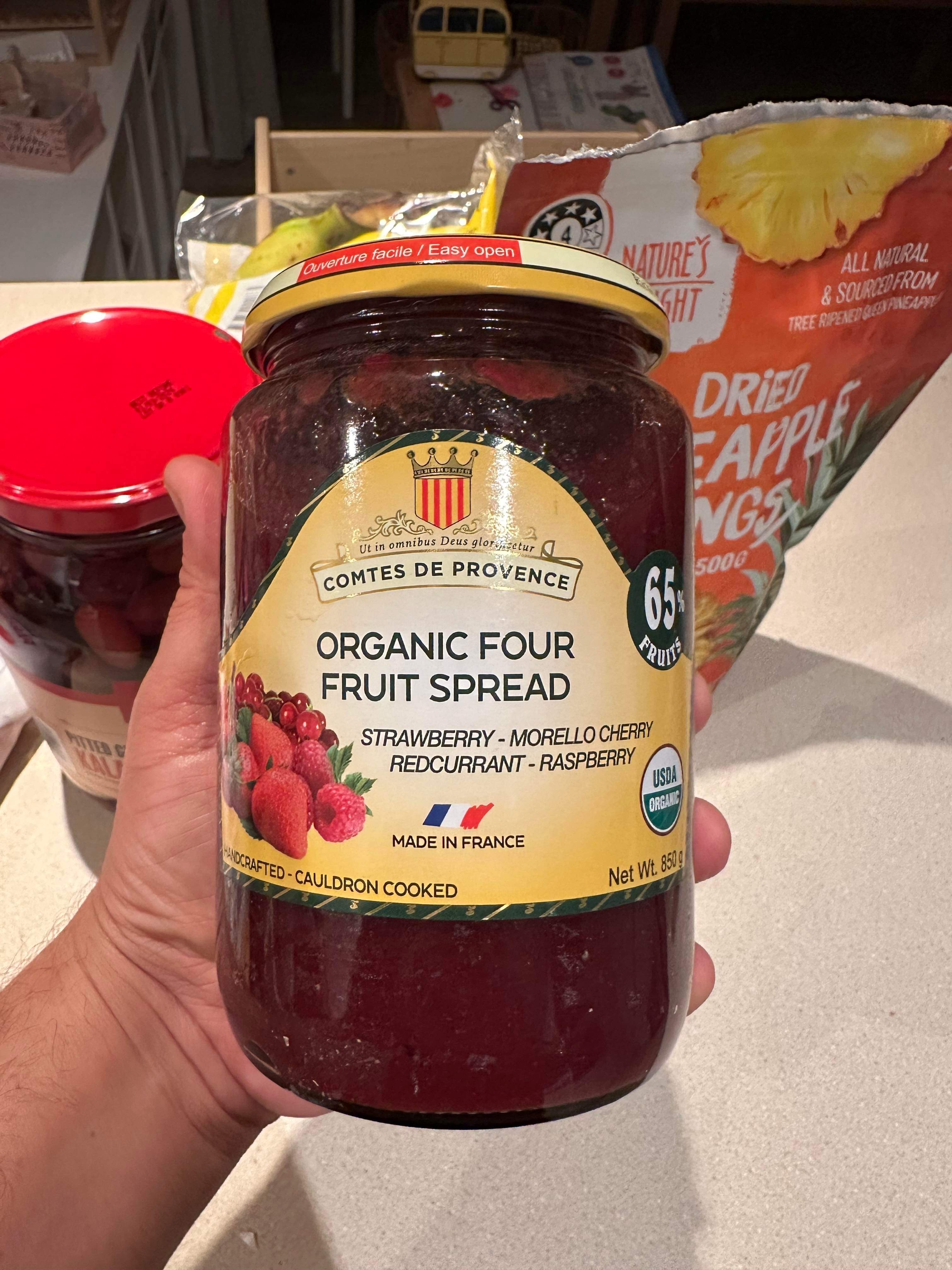 Super bonne confiture naturelle avec beaucoup de goût je les ai découvert dans un magasin américain et depuis je commande que celle là super vraiment et merci pour les petits cadeau à chaque fois