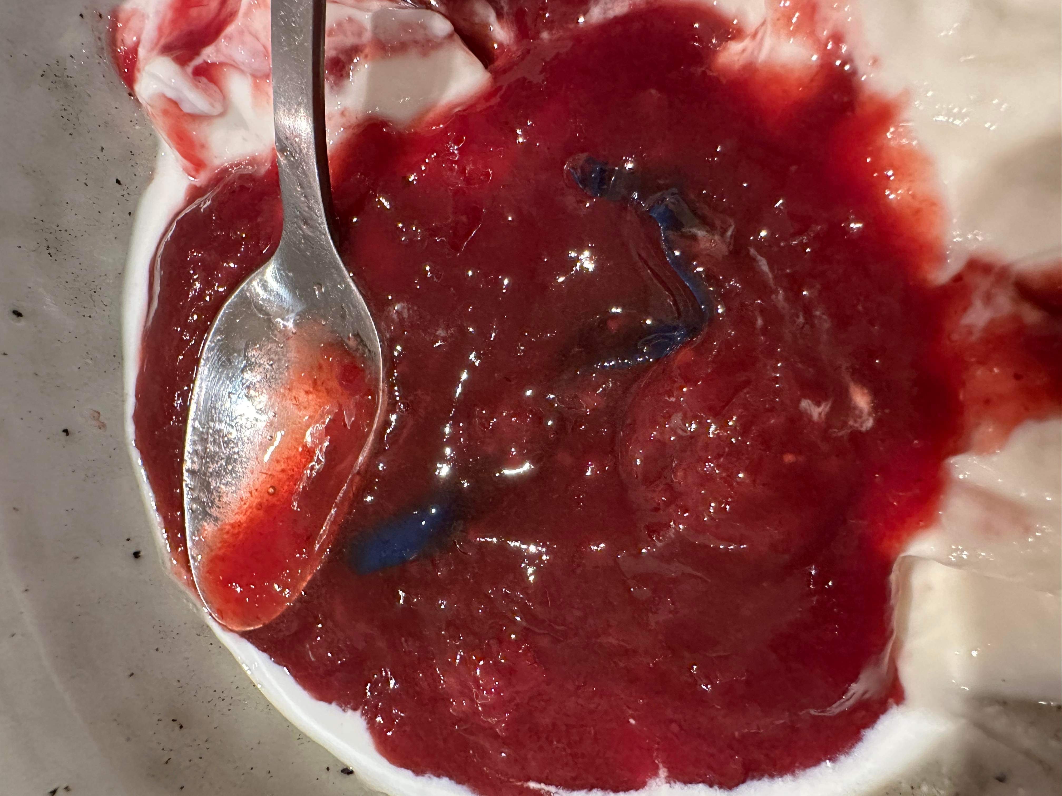 J'ai trouver ce morceaux de plastique très rigide et tranchant dans confiture à la cerise je l'ai manger et j'ai cru qu'une de mes dents été tomber et en nettoyant ce dure morceaux à l'eau mêlée à la confiture rouge ça m'a choquée car j'aurais pu me couper, et me faire mal. Suite à sa j'ai contacter l'entreprise qui m'a fais tourner en bourrique et ne m'a jamais recontacter malgrés mes appels et mes alertes je ne recommande plus je n'achèterai plus malheureusement dommage car la confiture était très bonne la preuve le pots était vide. 😕