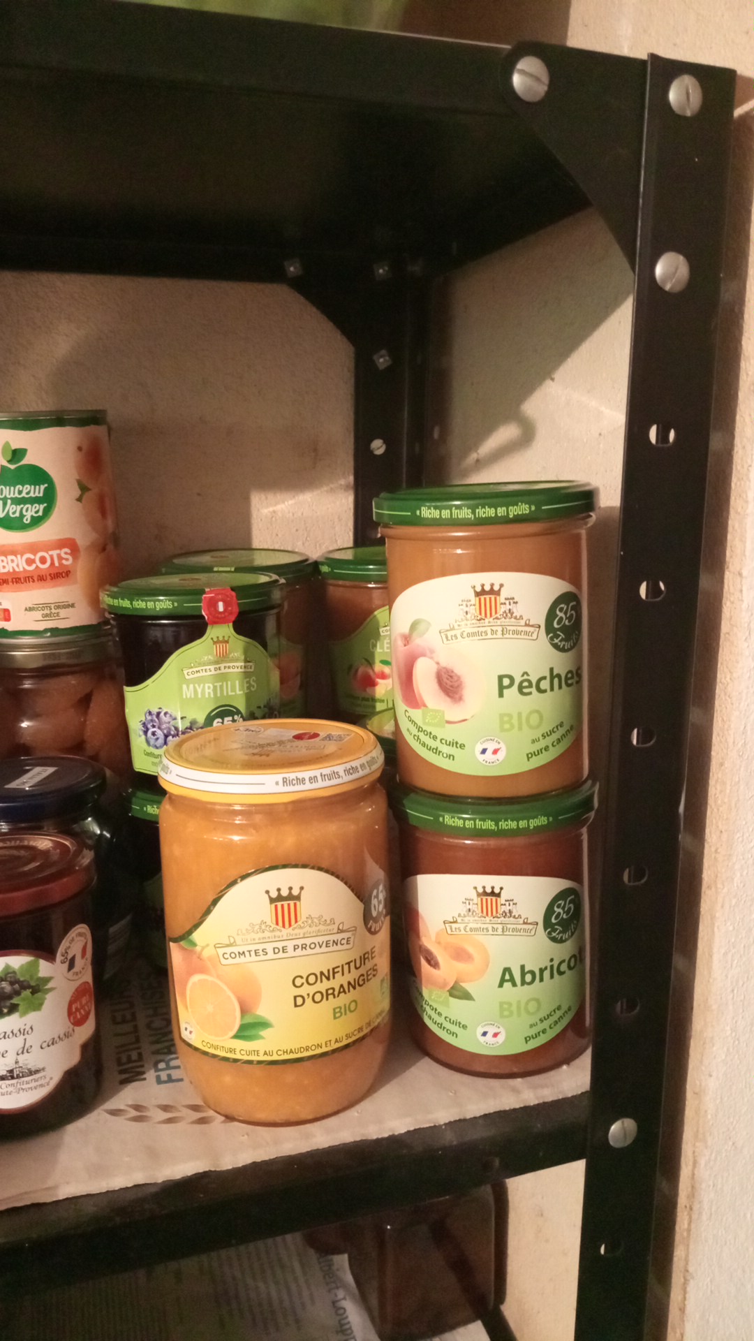 Les confitures ont bon goût. Mais malheureusement l’origine des fruits, comme la confiture de framboise, n’est pas précisée. Cela donne l'impression que le fruit vient de Provence. Bien sûr, je ne parle pas des bananes, mais des fruits qui poussent aussi en Provence. Donc seulement 3 étoiles.