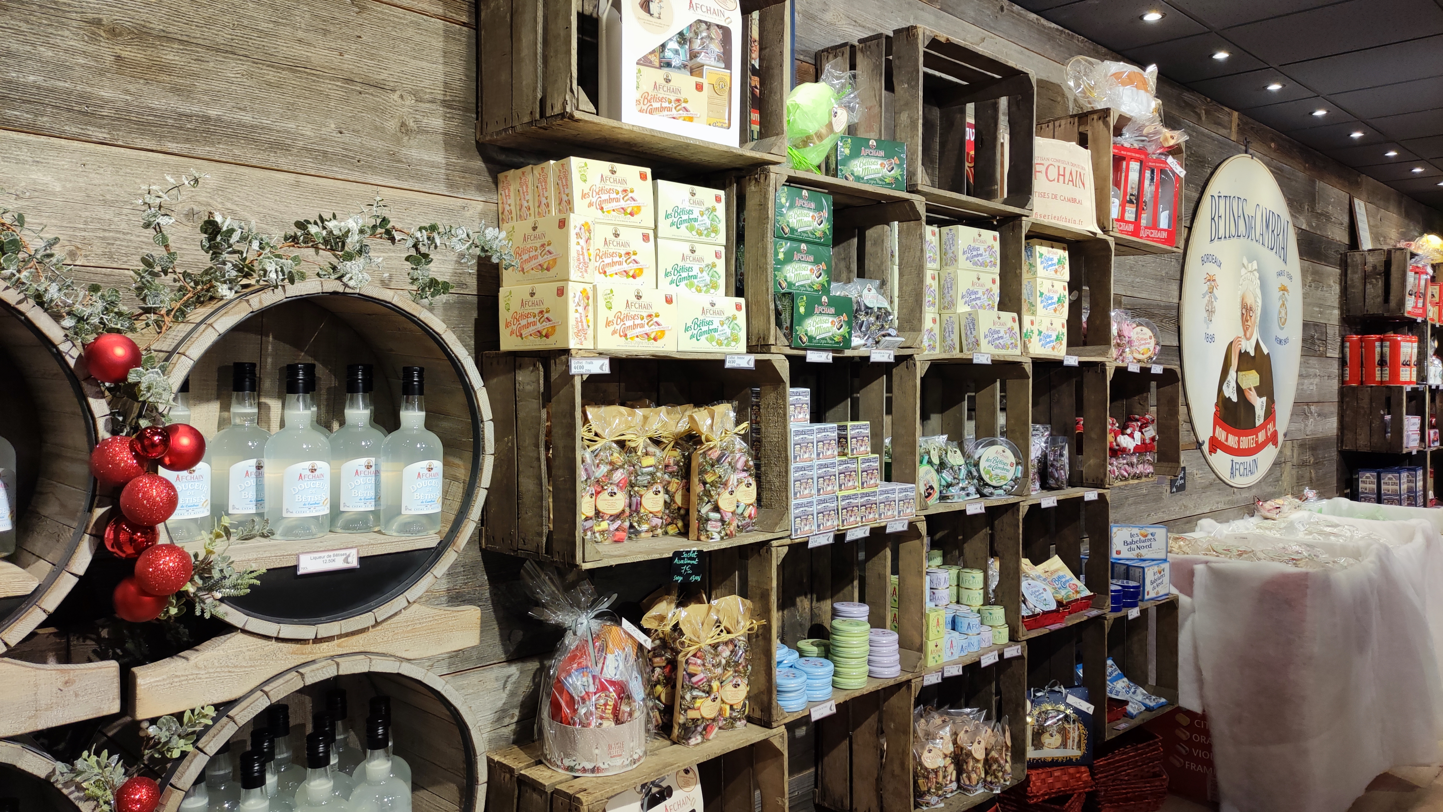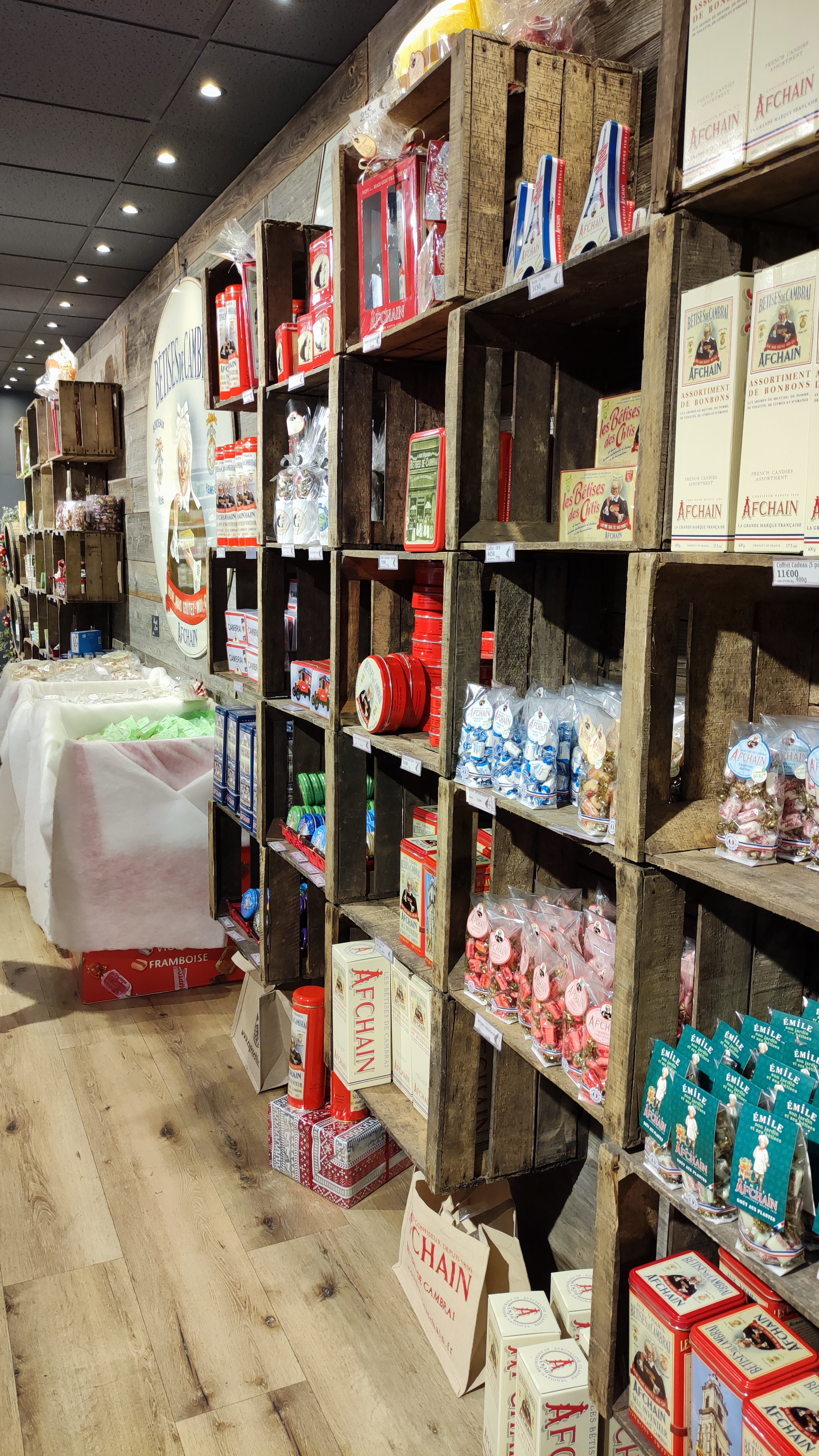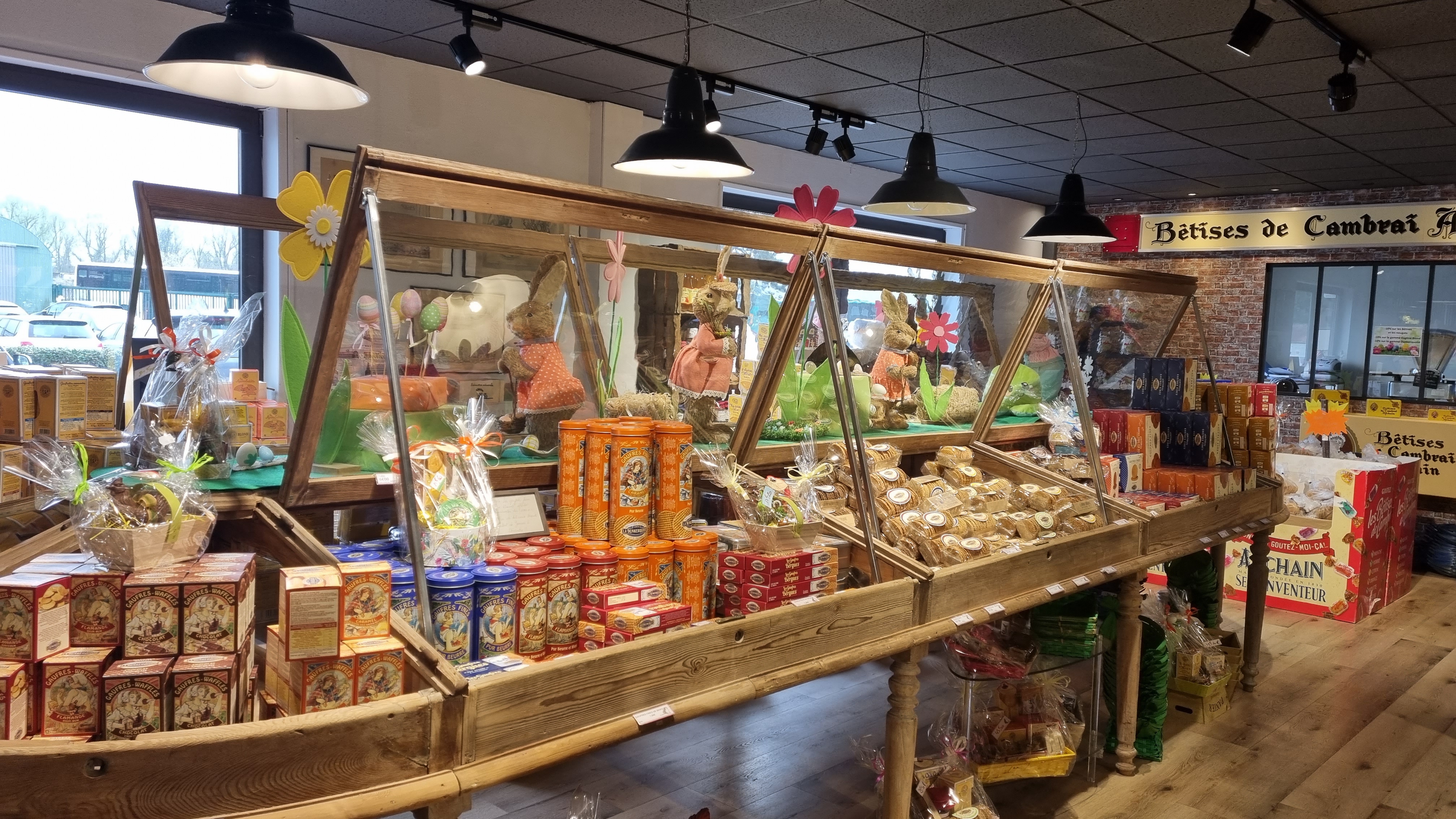 Boutique où l'on trouve la confiserie bêtise de Cambrai . Et d'autres spécialités comme les gaufrettes .