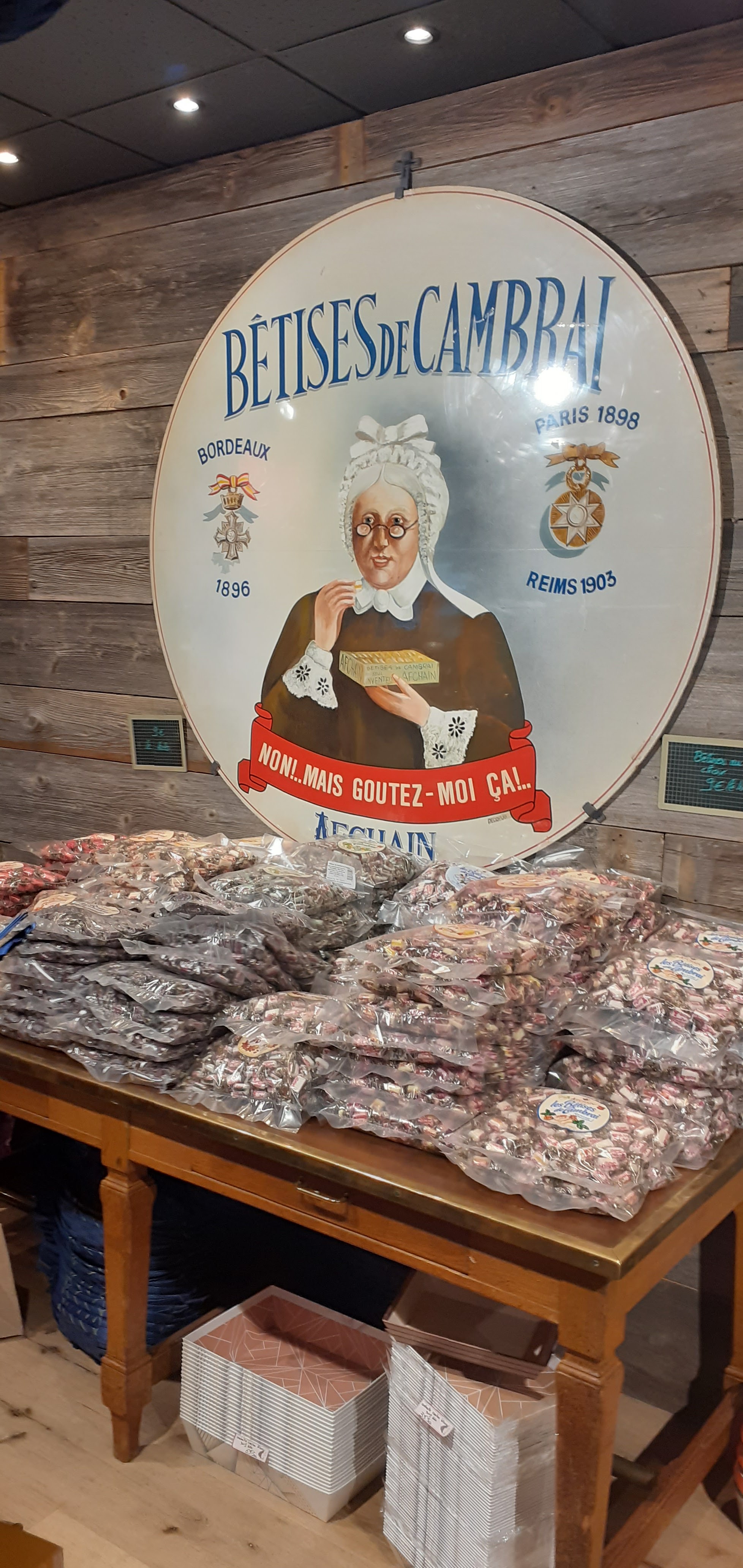 Magasin des bêtises de Cambrai Afchain. On y trouve aussi une grande diversité de produits du Nord.