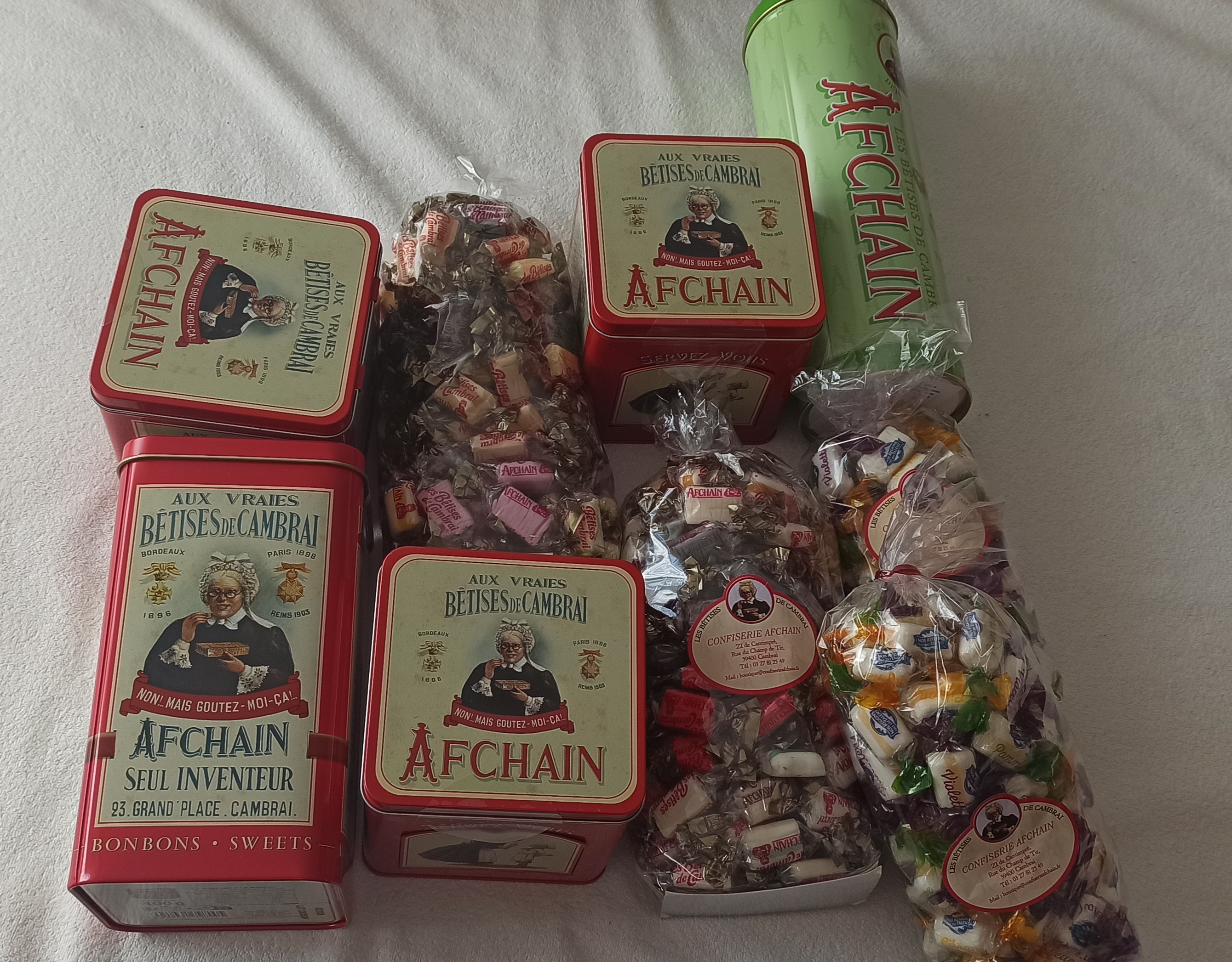 Aujourd'hui 1er août 2023.visite de la confiserie Afchain fabriquant des fameuses bêtises de Cambrais. Très joli magasin avec le goût et le regard sur de belles choses d'autrefois. Accueil merveilleux, personnel blagueur, comme nous aimons 👍🏻tout
