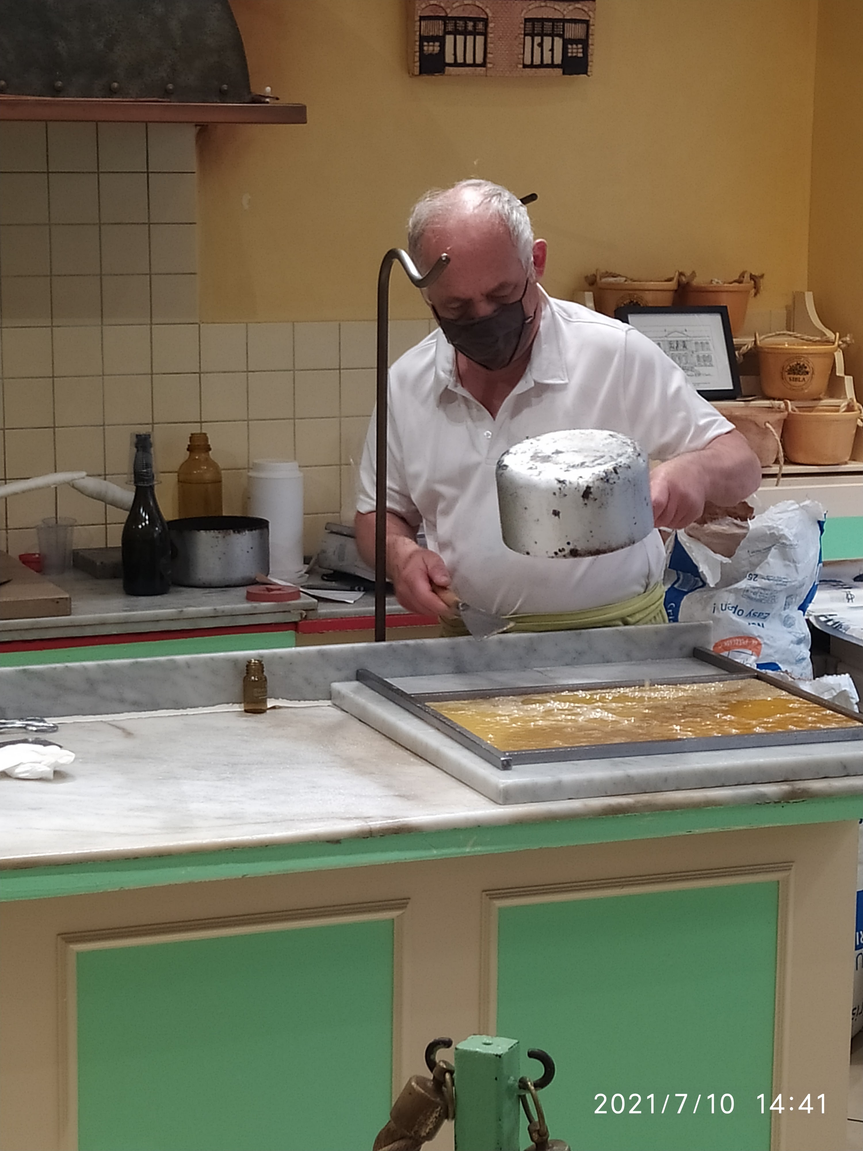 Accueil sympathique,souriant et on voit l'amour du métier en ce monsieur.Demonstration de fabrique de bonbons.