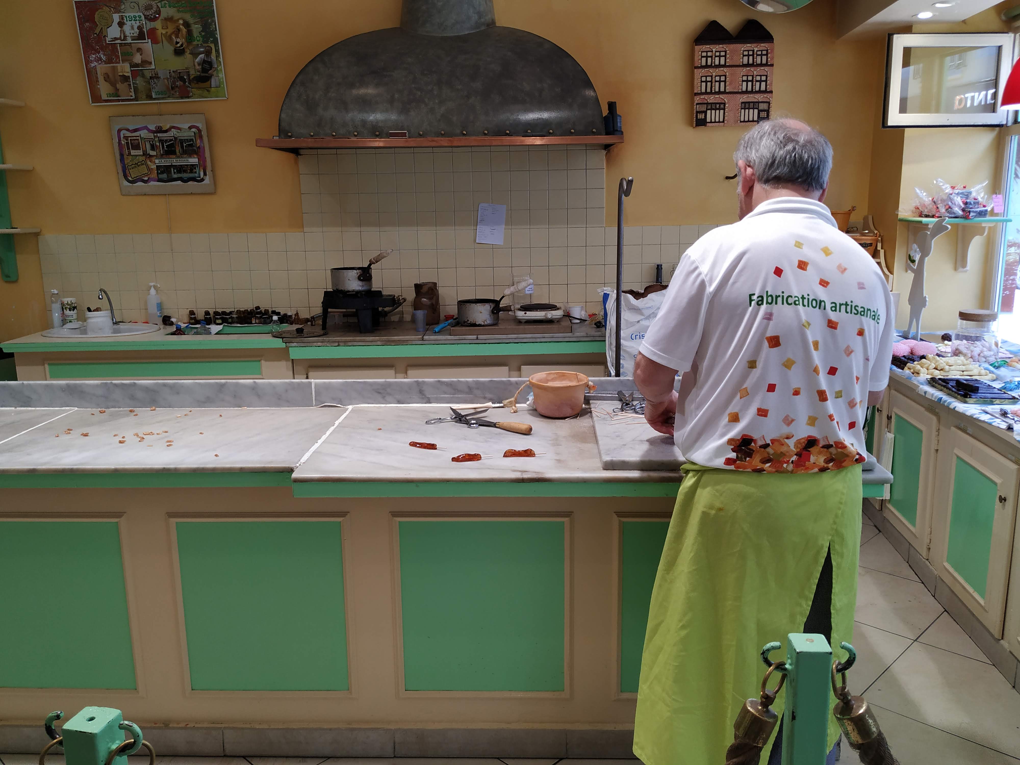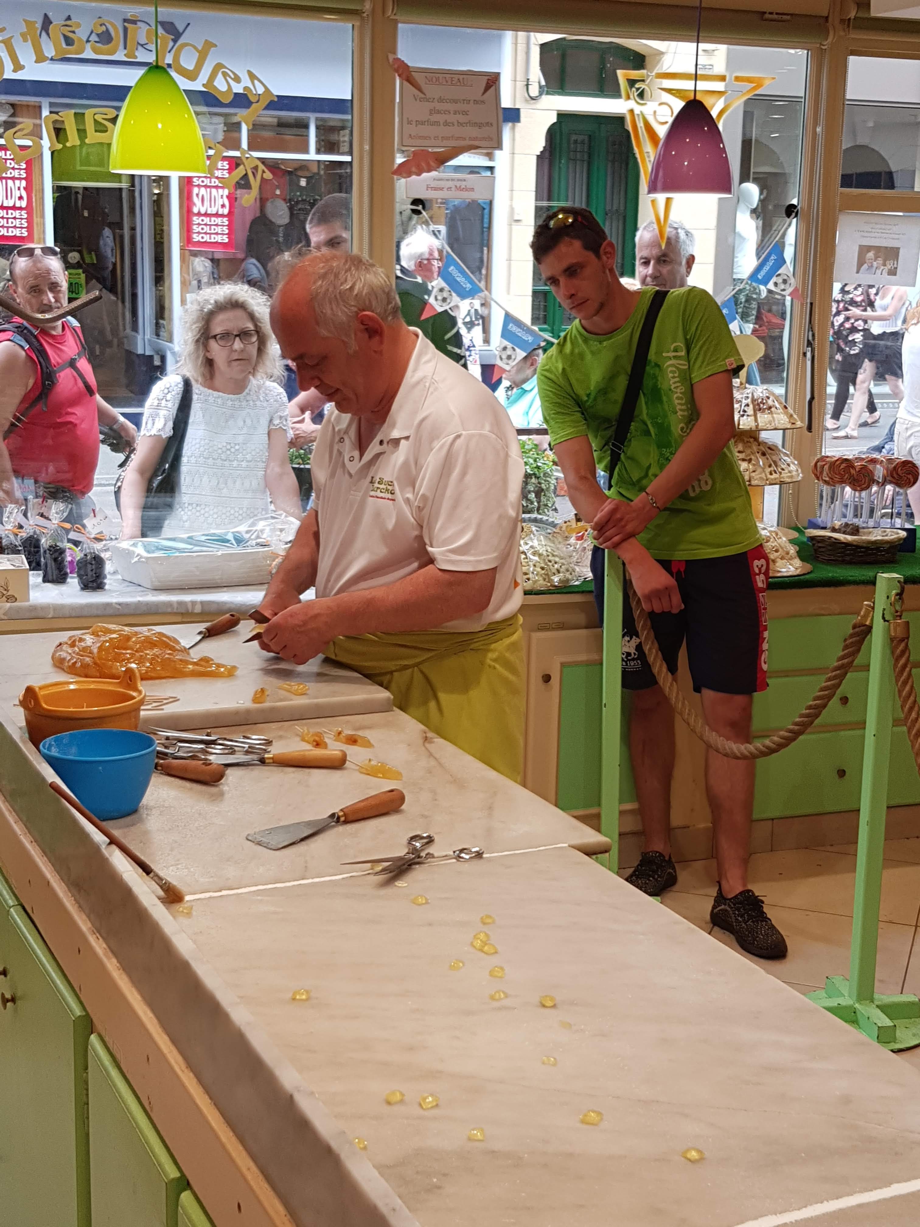 Boutique sympathique avec une démonstration de la fabrication des berlingots par un passionné
