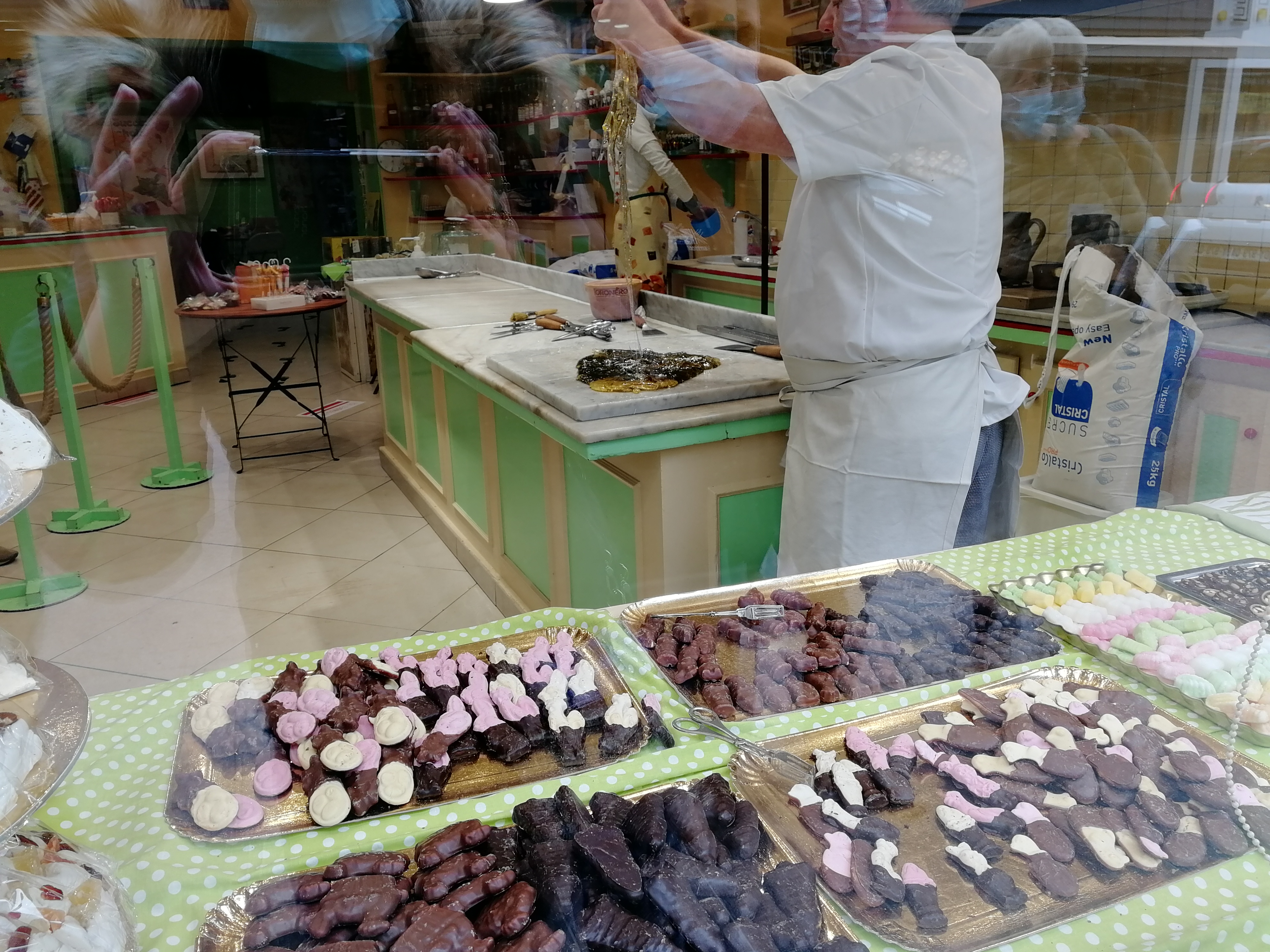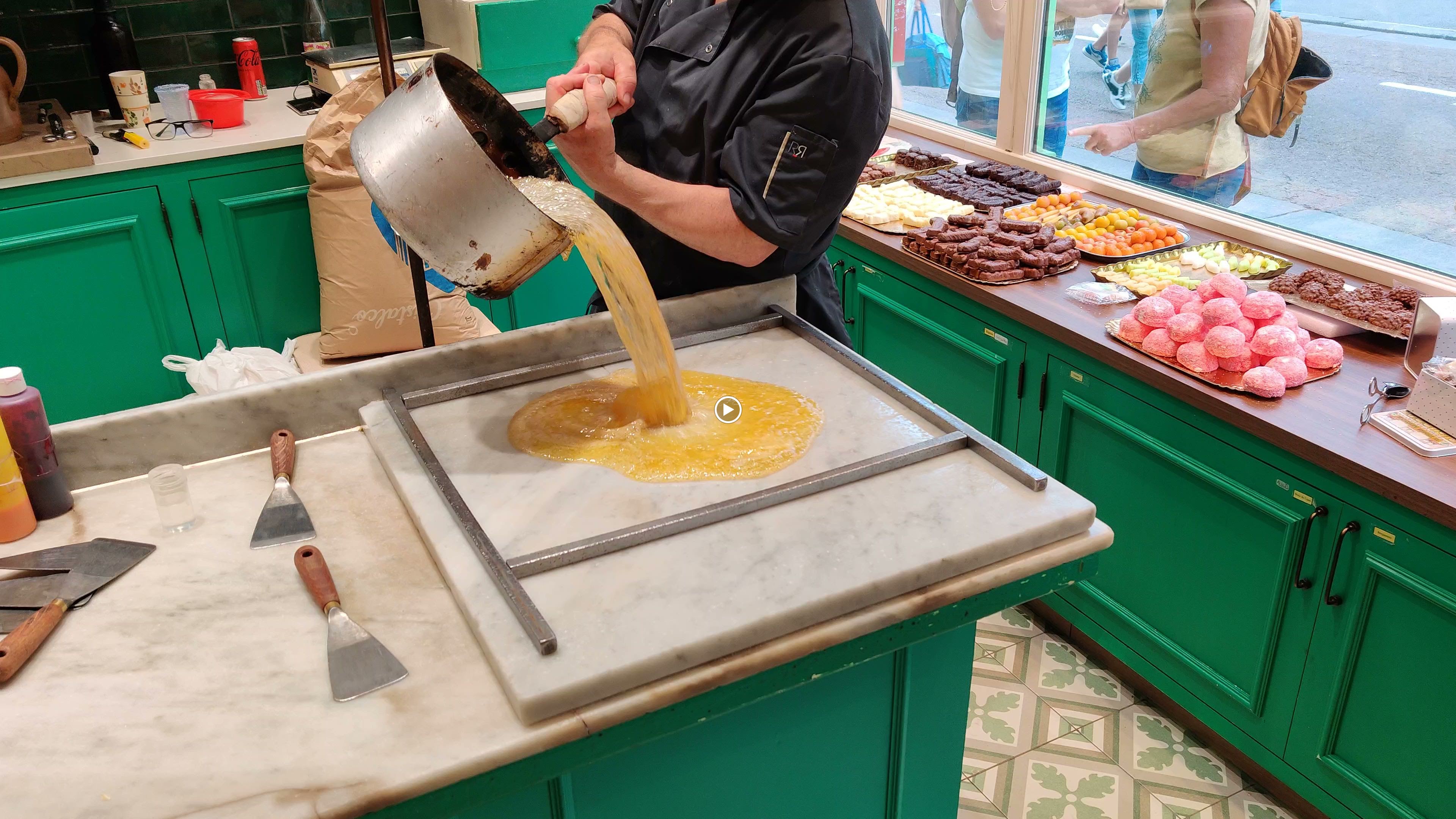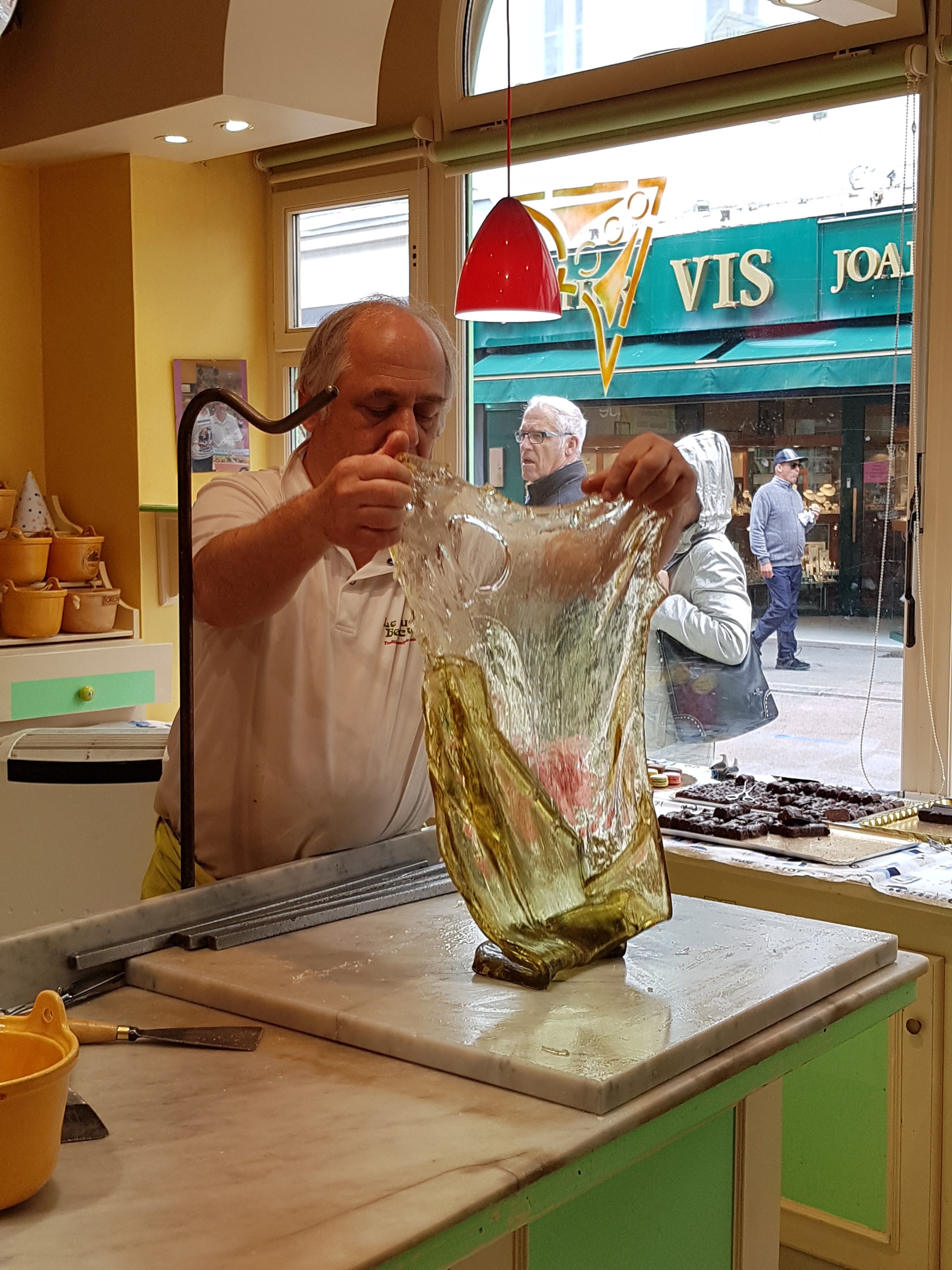 Fabrication en live de bonbons, sympa a regarder, soit de l’intérieur de la boutique soit depuis la vitrine.