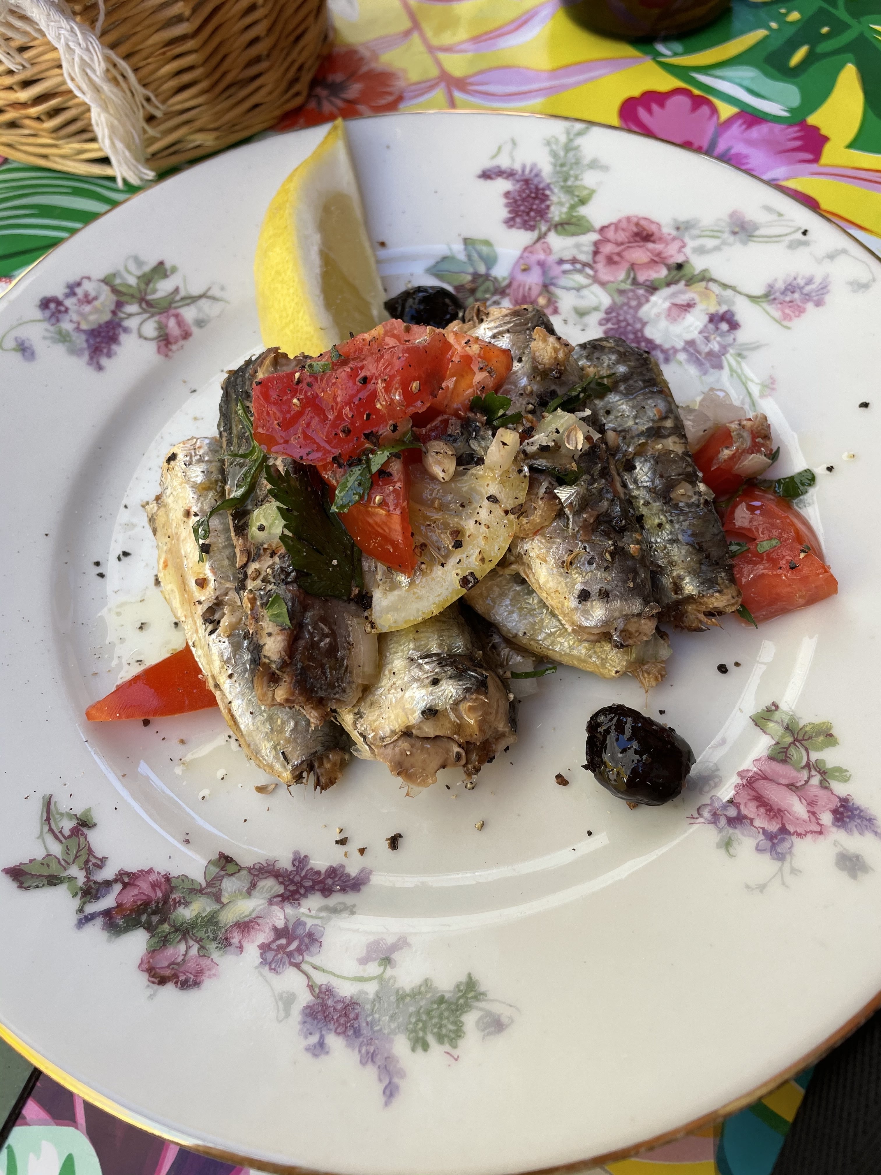 Petits, délicieux tapas français, délicieuses quiches, sardines à l'huile, tapenade spectaculaire, ......... cool, chant des cigales,.........détente